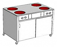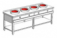 4 конфорки; индукционная и WOK конфорка; 380 В